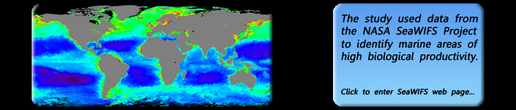 The migration patterns of the Arctic tern correspond well with our knowledge of marine productivity. From space, it is possible to monitor the concentration of chlorophyll (which gives an indication of high productivity in the food web) originating from algae blooms in the world oceans,